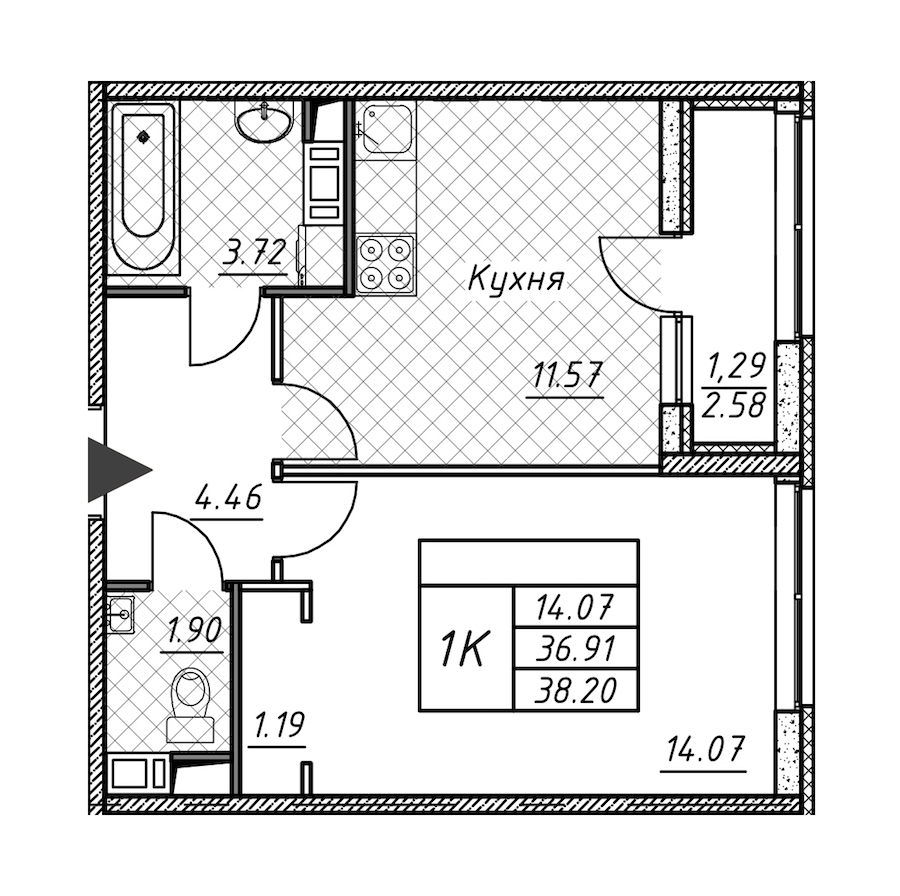 - Площадь38,2 м2