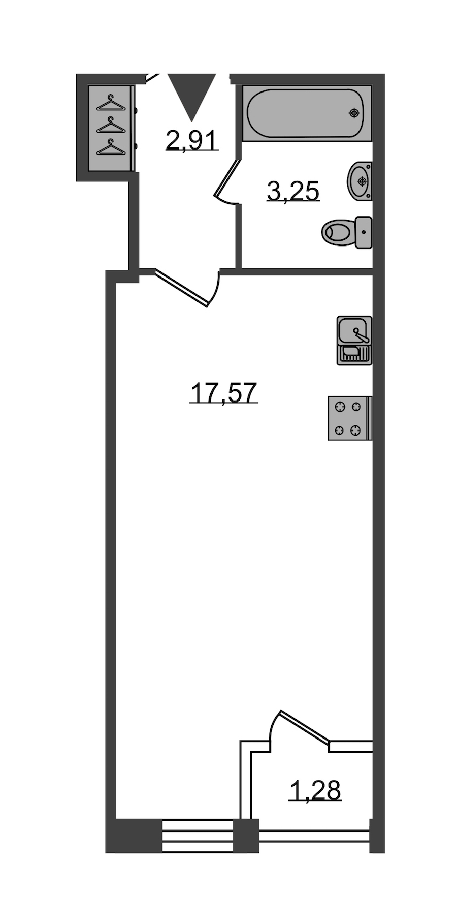 Квартира-студия на 1-ом этаже 23,9 кв.м