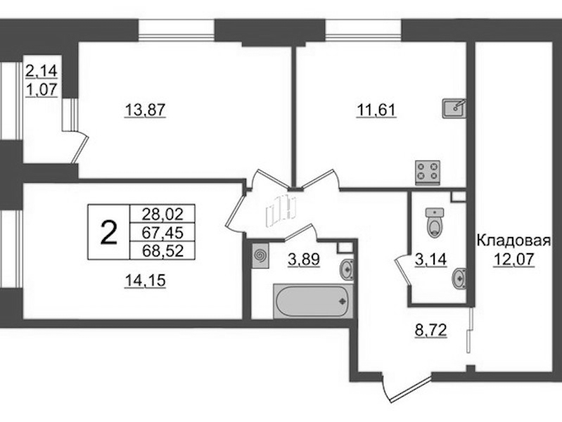 - Площадь68,52 м2