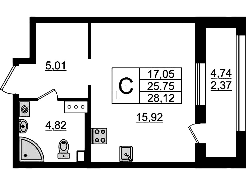 - Площадь28,12 м2