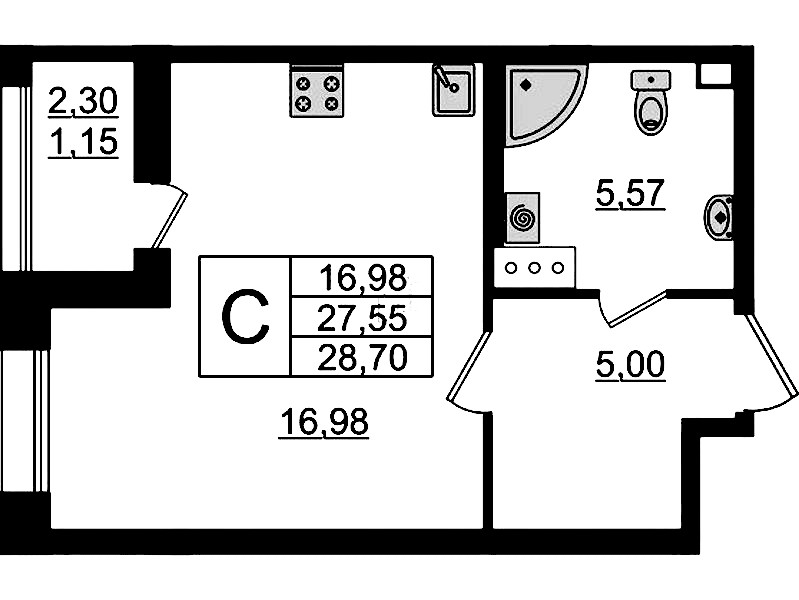 - Площадь28,7 м2
