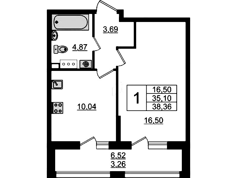 - Площадь38,36 м2