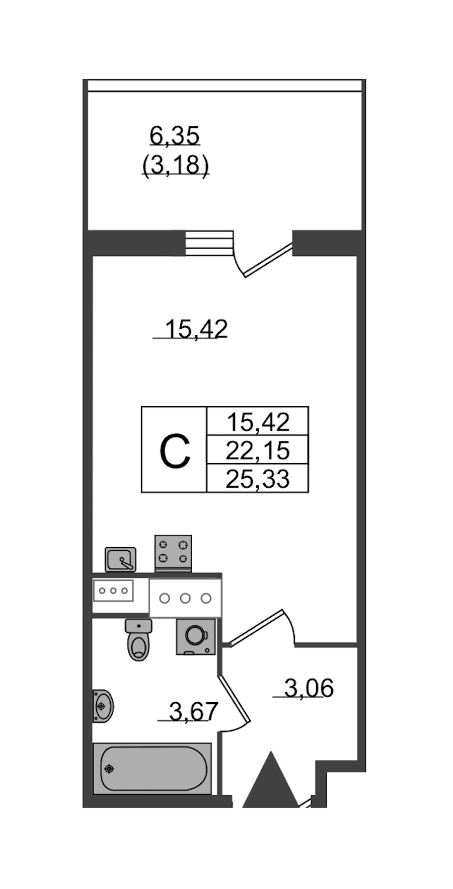 - Площадь25,33 м2