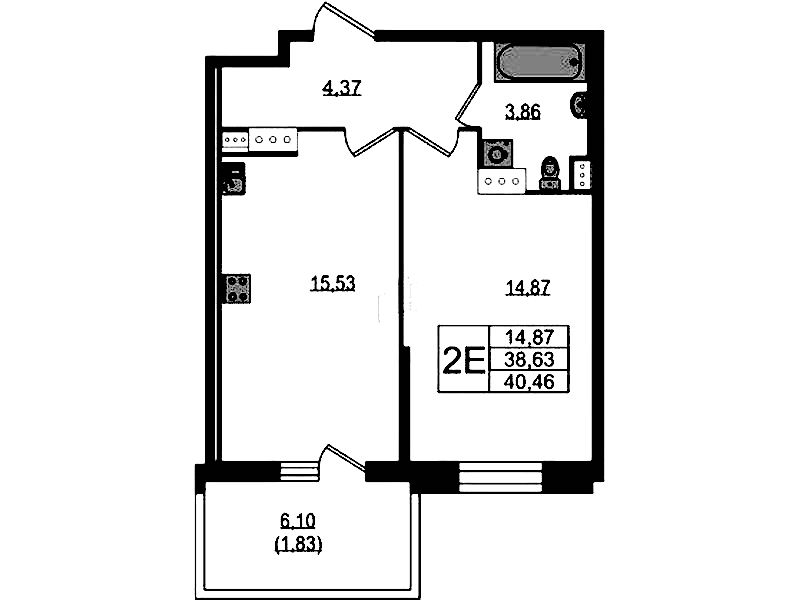 - Площадь41,3 м2