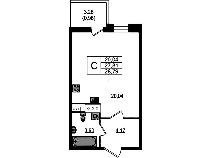 - Площадь28,8 м2