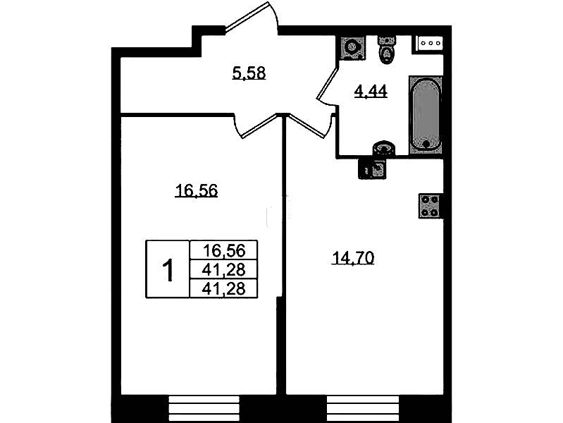 - Площадь40,8 м2