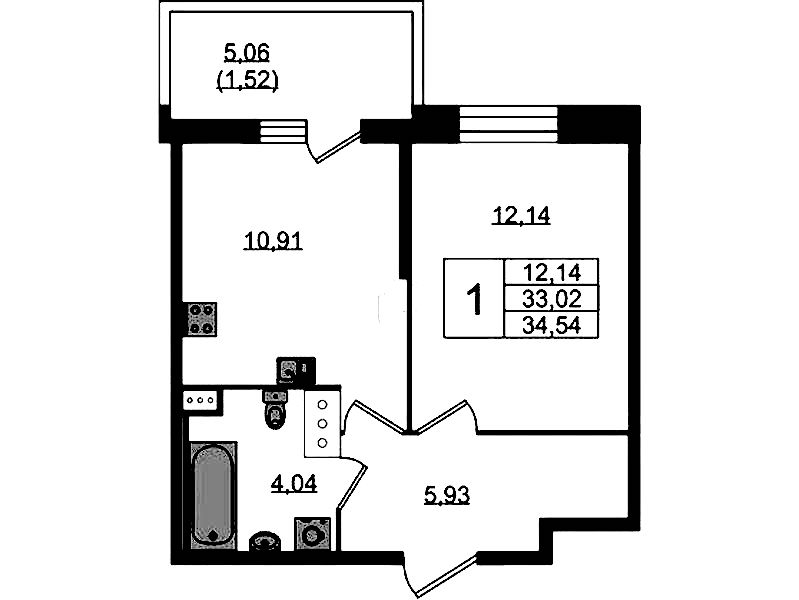 - Площадь кухни10,91 м2