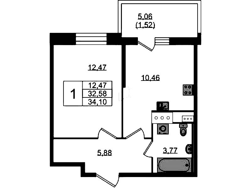 - Площадь кухни10,46 м2
