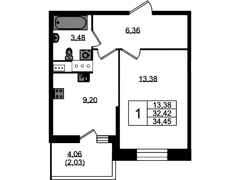 - Площадь34 м2