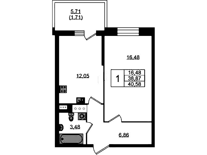 - Площадь40,3 м2