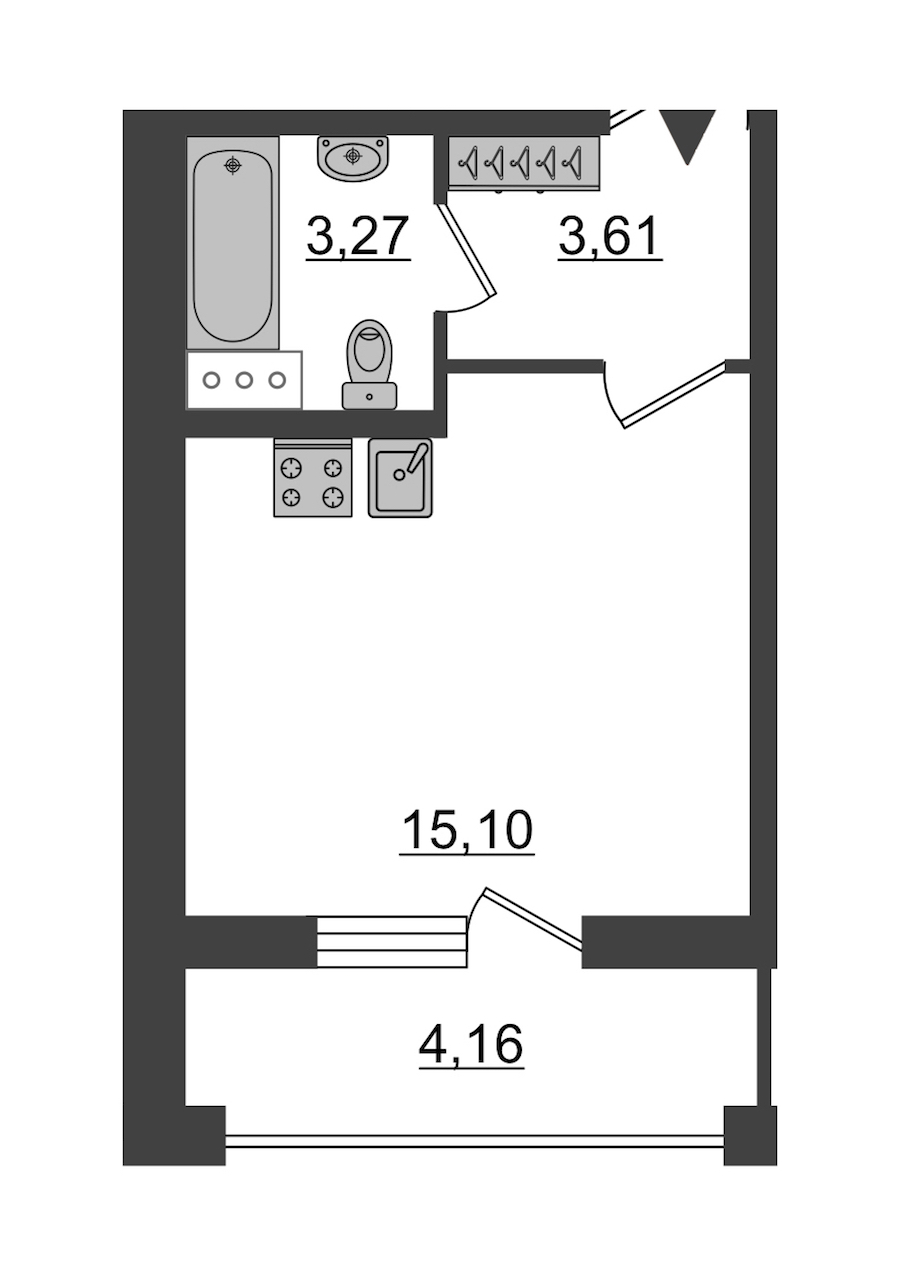 - Площадь24,8 м2