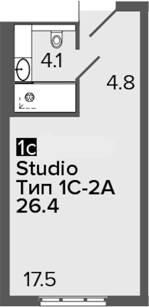 Квартира-студия на 3-ем этаже 26,4 кв.м