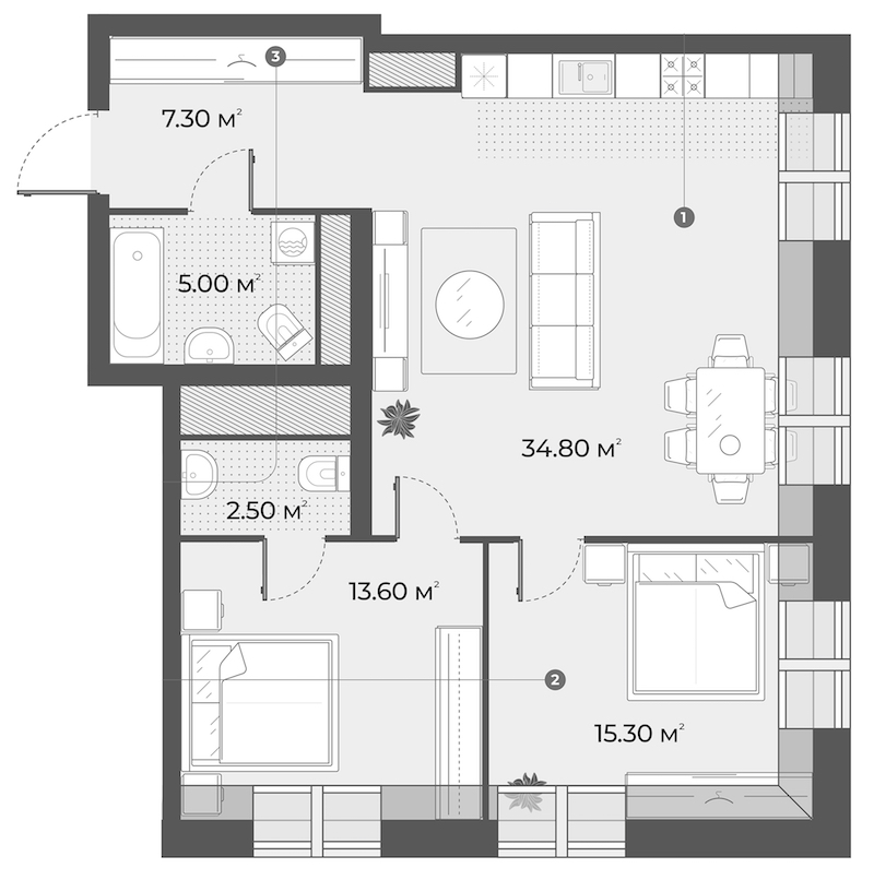 - Количество комнат3