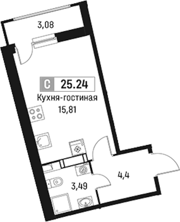 - Площадь25,24 м2