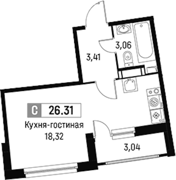 - Площадь26,31 м2