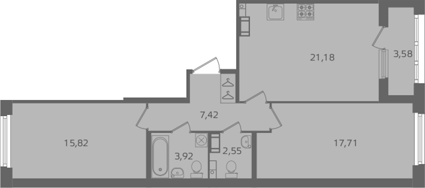 - Площадь68,6 м2