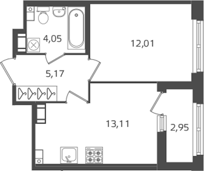 - Площадь кухни13,11 м2