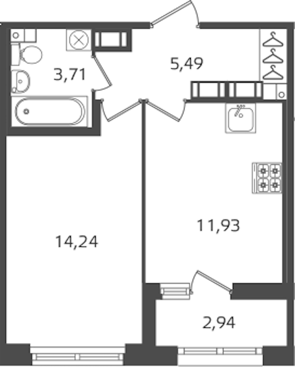 - Площадь кухни11,93 м2