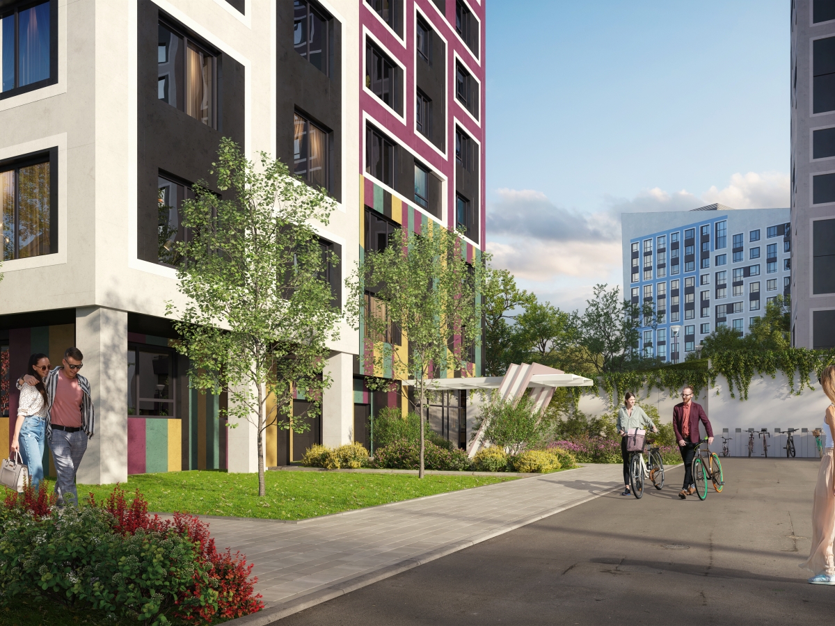 Архитектура ЖК "БелАрт" это не только эстетичность фасадов, но и современная урбанистика в сочетании с функциональностью. Корпуса образуют закрытые от автомобилей дворы. Благодаря объединению корпусов стилобатами, во дворах будет меньше ветра. Первые этажи жилых зданий отведены для коммерческих помещений и просторных входных групп. Высота потолков в них около 4 метров, что делает проживание на первом жилом этаже более комфортным и приватным в отличие от стандартной высоты второго этажа.