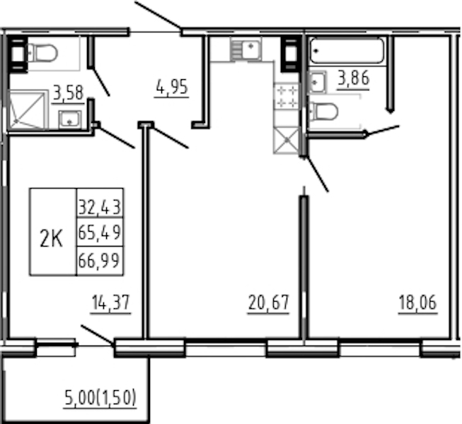 - Площадь66,99 м2