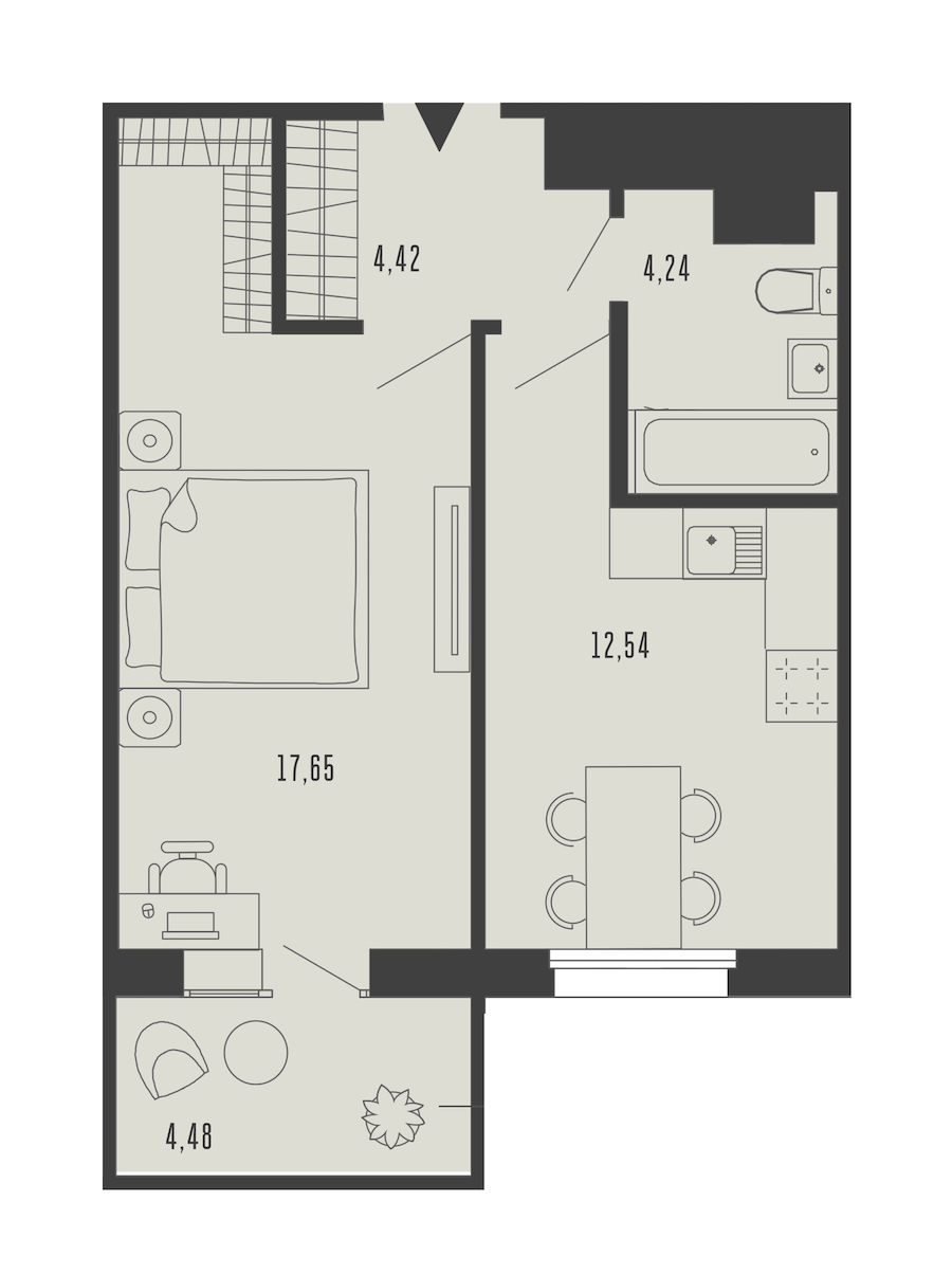 - Площадь кухни12,54 м2