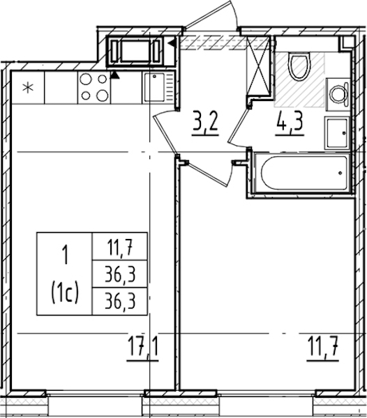 Однокомнатная квартира на 8-ом этаже 36,3 кв.м