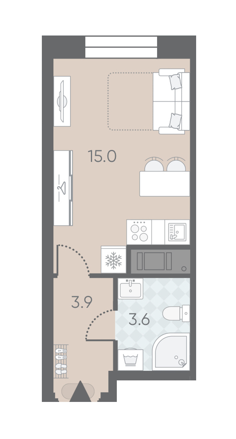 Квартира-студия на 12-ом этаже 22,5 кв.м