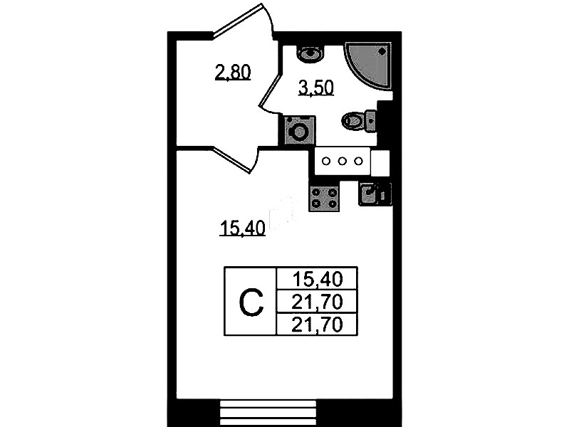 • Площадь21,7 м2
