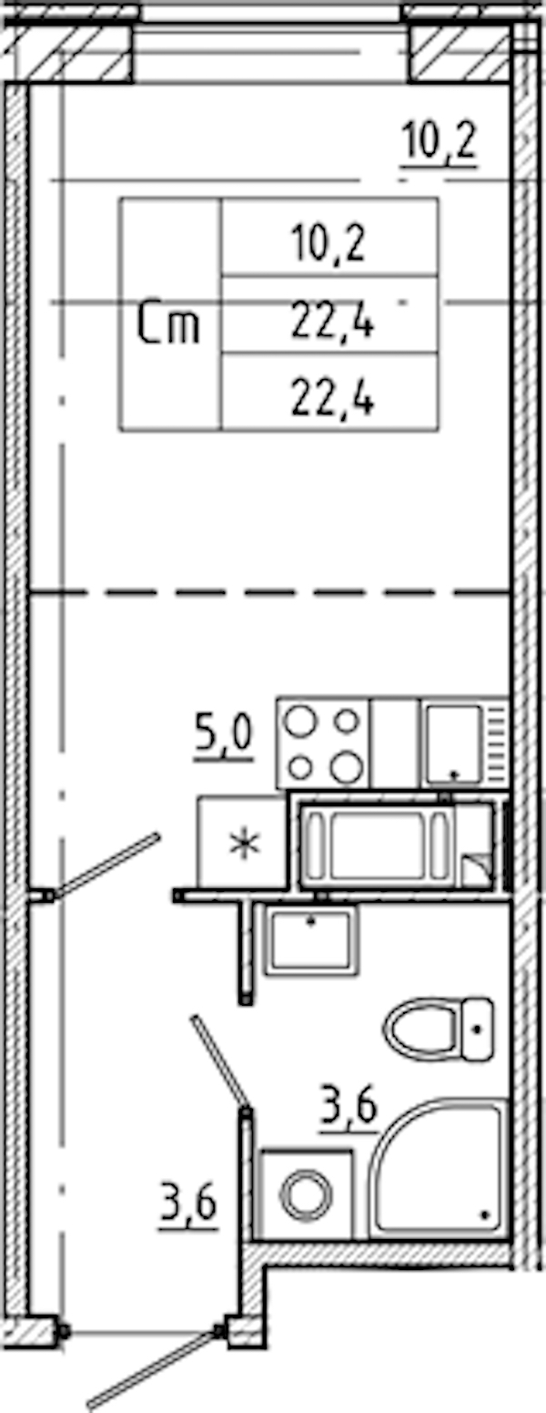 - Площадь22,4 м2