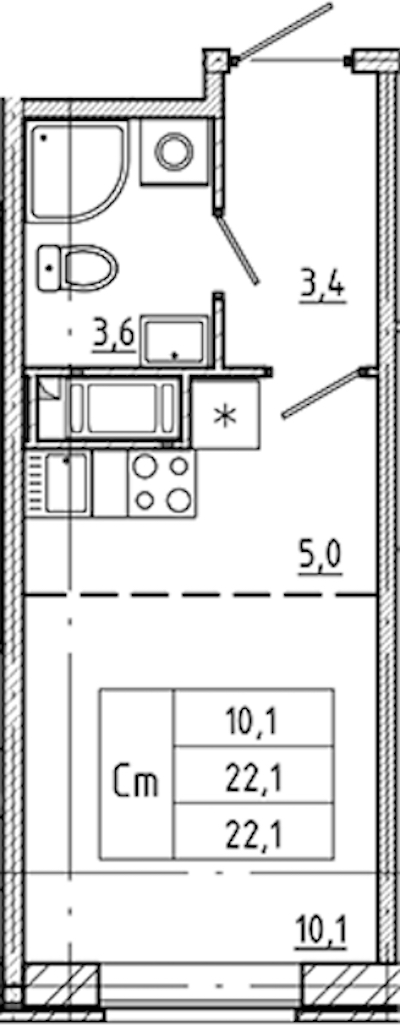 Квартира-студия на 11-ом этаже 22,1 кв.м