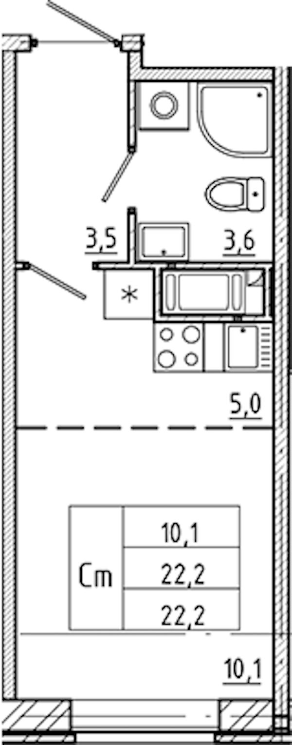 Квартира-студия на 10-ом этаже 22,2 кв.м