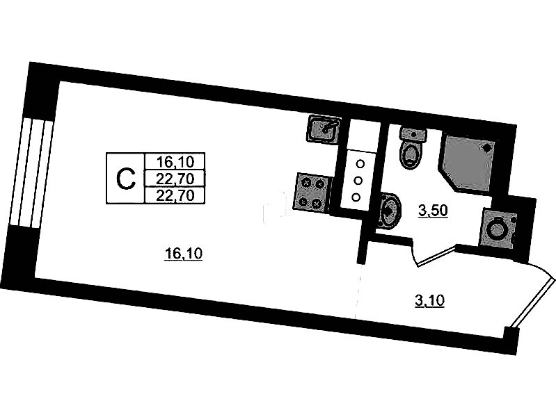 - Площадь22,7 м2