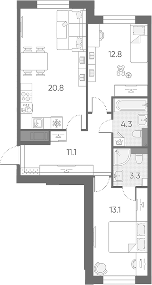 - Площадь кухни20,8 м2
