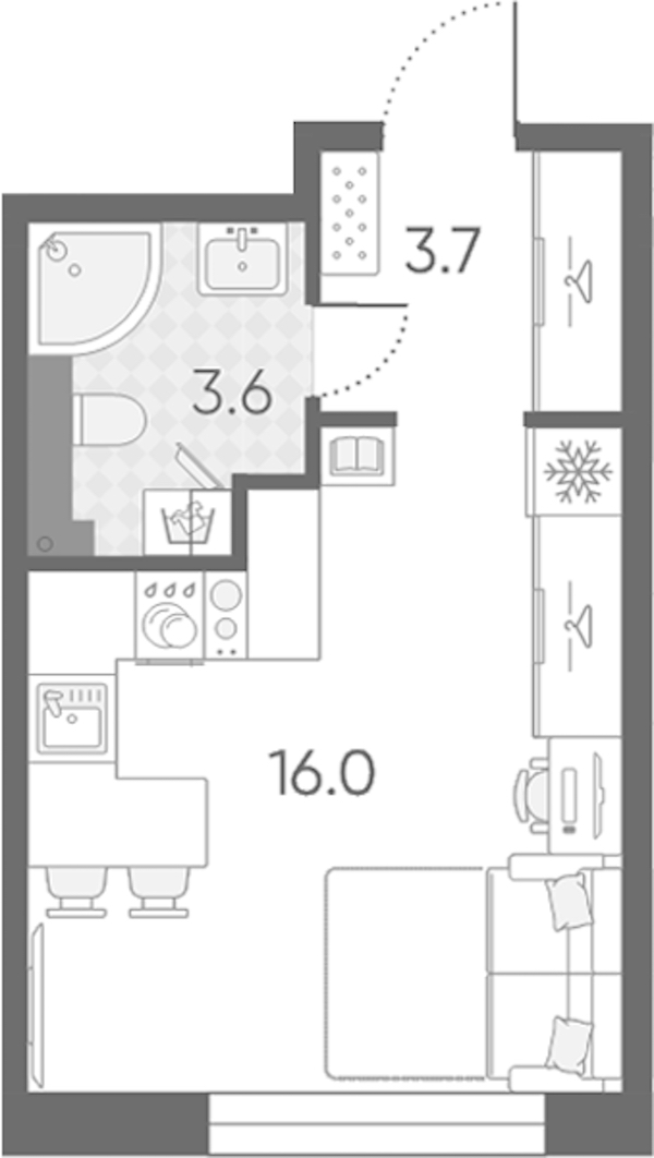 Квартира-студия на 2-ом этаже 23,3 кв.м