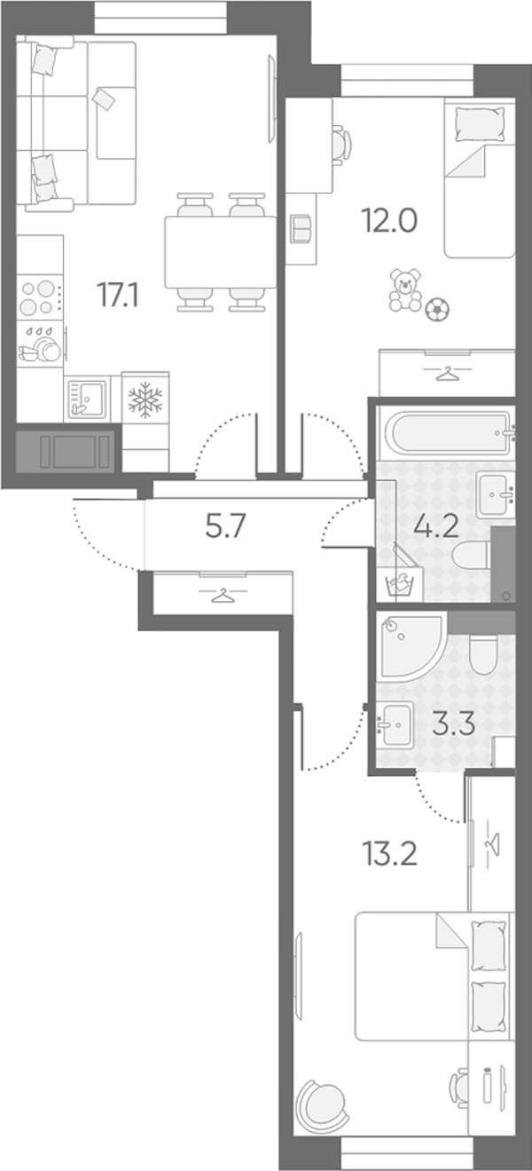 - Площадь55,5 м2