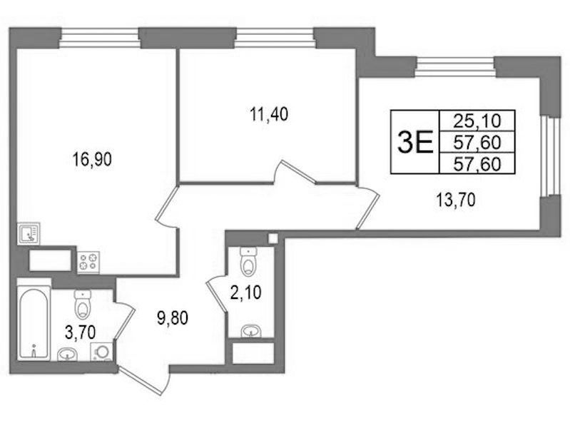 - Площадь57,6 м2