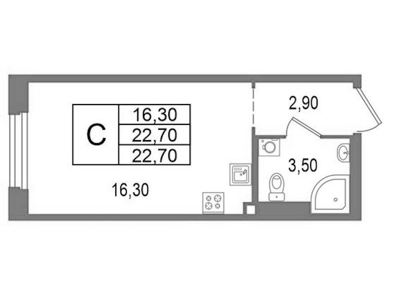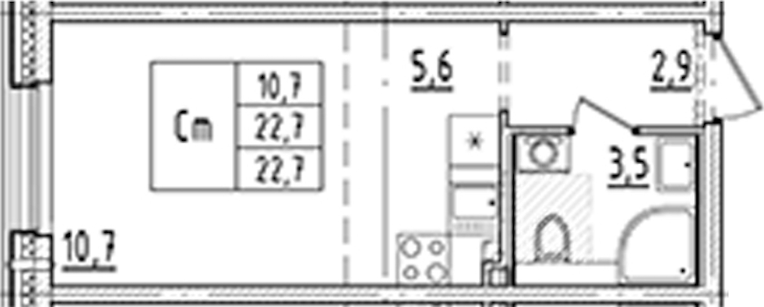 Квартира-студия на 3-ем этаже 22,7 кв.м