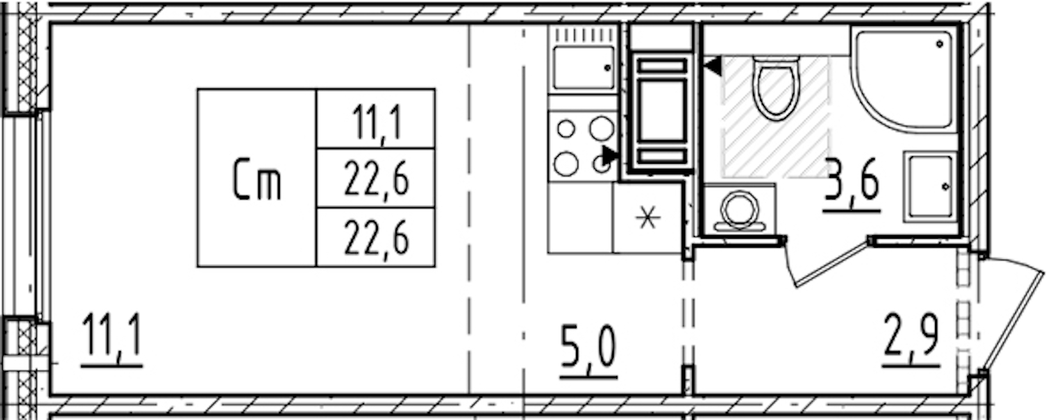 Квартира-студия на 4-ом этаже 22,6 кв.м