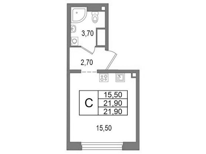 Квартира-студия на 5-ом этаже 21,9 кв.м