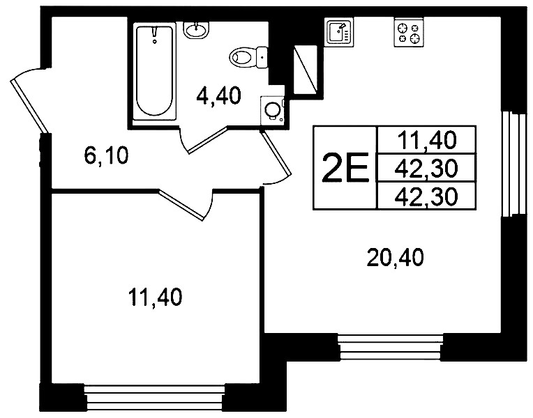 • Площадь42,3 м2