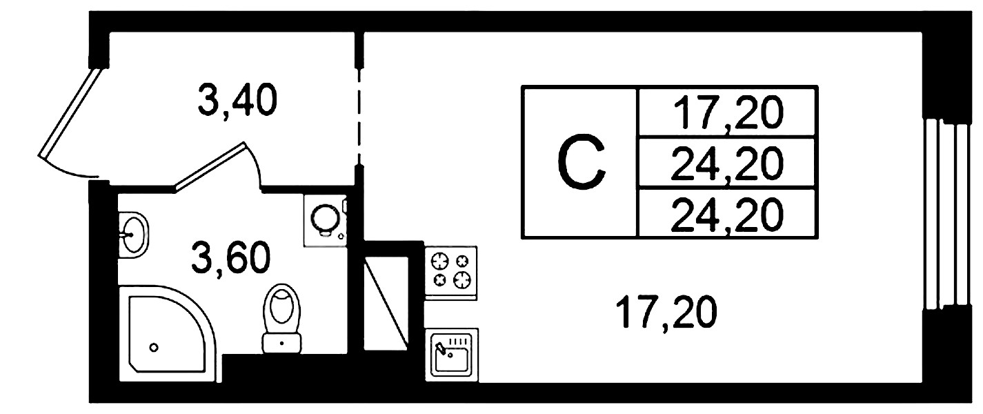 Квартира-студия на 7-ом этаже 24,2 кв.м