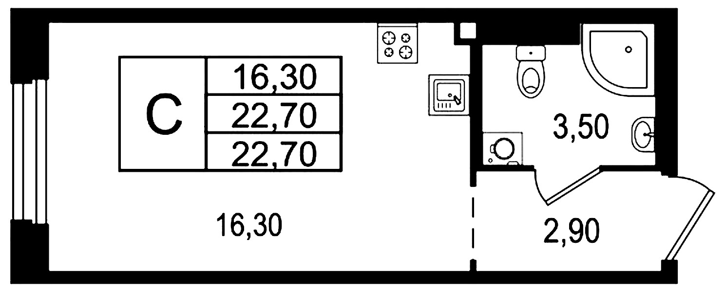 Квартира-студия на 3-ем этаже 22,7 кв.м