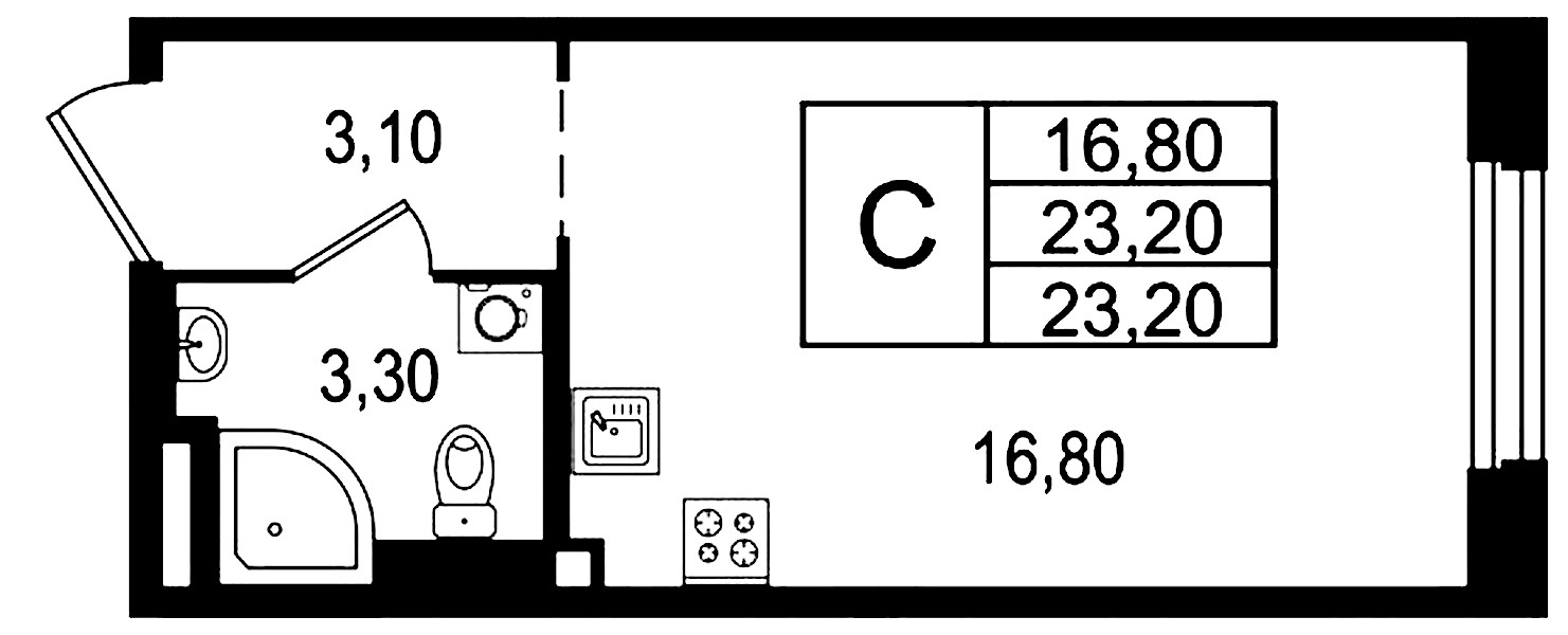 Квартира-студия на 3-ем этаже 23,2 кв.м