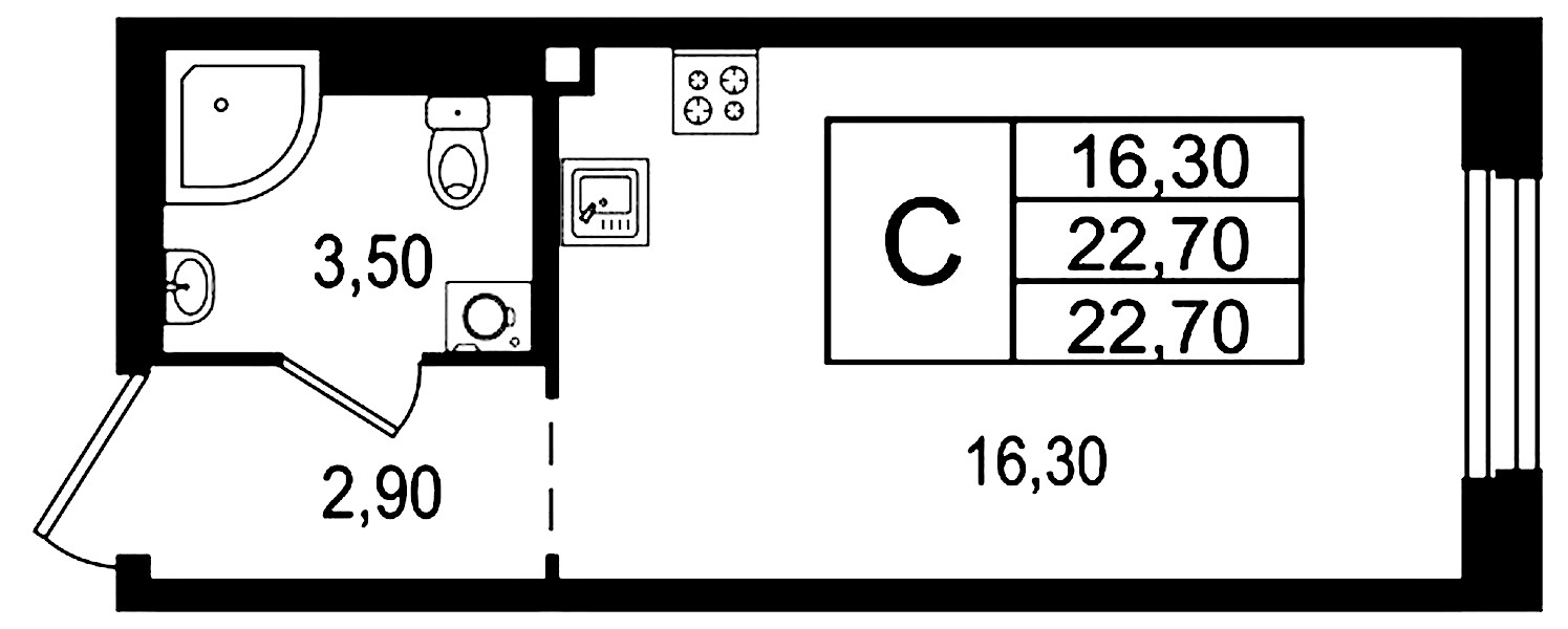 Квартира-студия на 3-ем этаже 22,7 кв.м