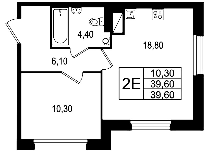 • Площадь39,6 м2