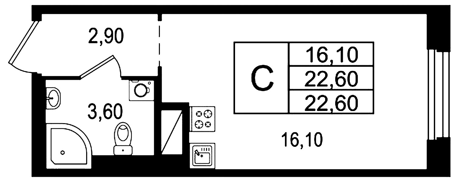 Квартира-студия на 5-ом этаже 22,6 кв.м