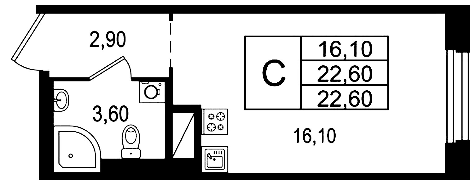 - Площадь22,6 м2