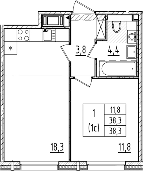 - Площадь38,3 м2