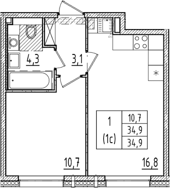 - Площадь34,9 м2