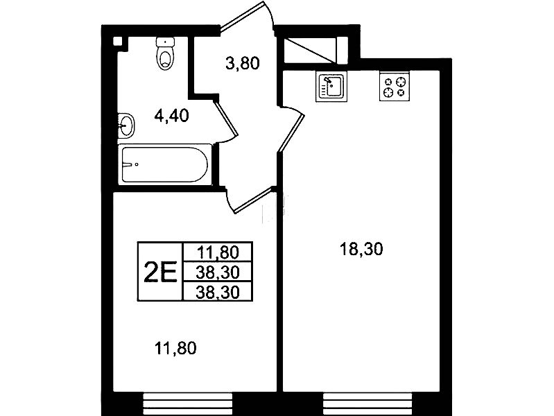 - Площадь38,3 м2